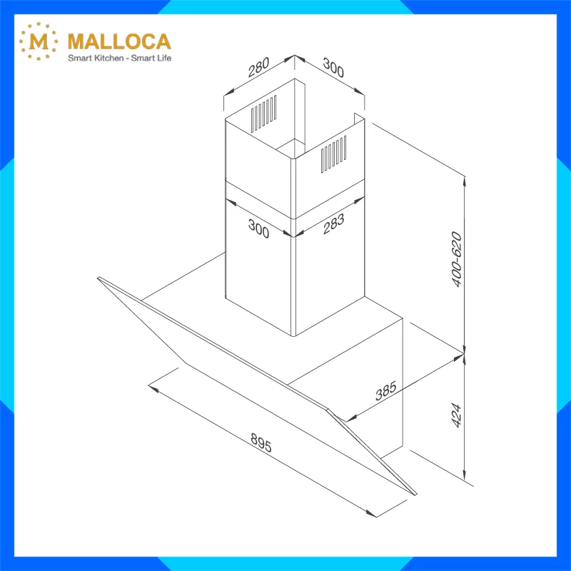 - Máy hút khói khử mùi – áp tường dạng nghiêng