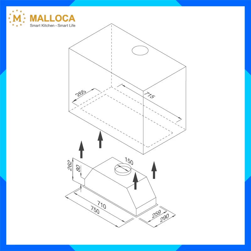 Máy hút khử mùi âm tủ MH 750BI