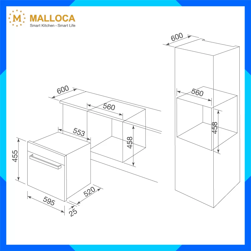 - Kích thước: W595 x D545 x H455mm